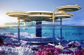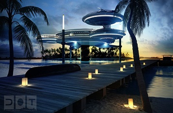 A "Water Discus Hotel" nevet viselő szállás űrhajó alakú lesz, ami mindemellett úgy néz ki, mint a korábbi James Bond filmekben látott rejtekhelyek egyike – egyébként ez az egyetlen ilyen a régióban. A víz alatti rész 10 méter mélyen van és a 21 db szoba mellett, hozzátartozik egy bár és egy búvárközpont is.