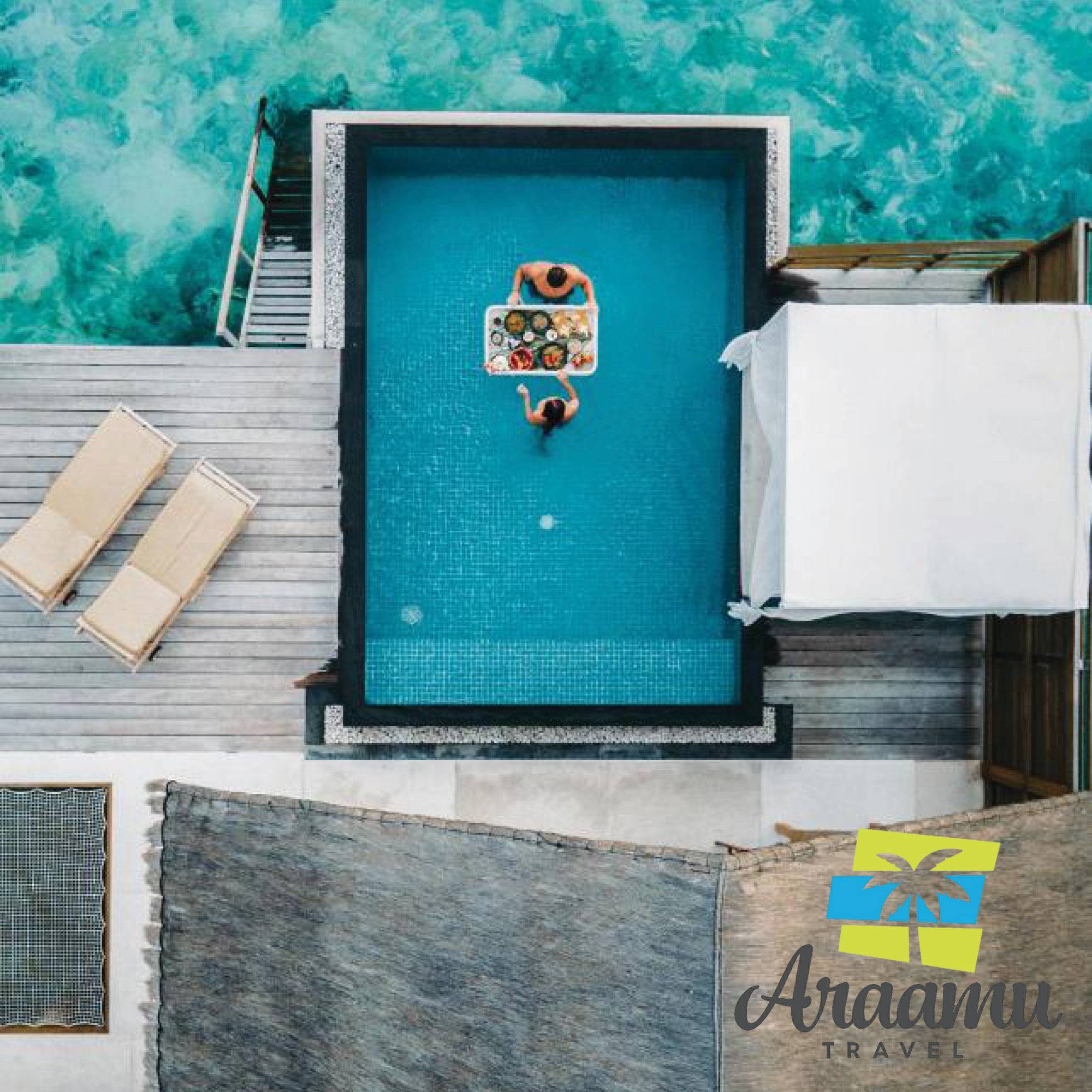 Water Villa: 98 nm-es, víz fölé épült bungalók, közvetlen víz kapcsolattal, napozóterasszal. Felszereltségben megegyezik a fenti szobatípusokkal.