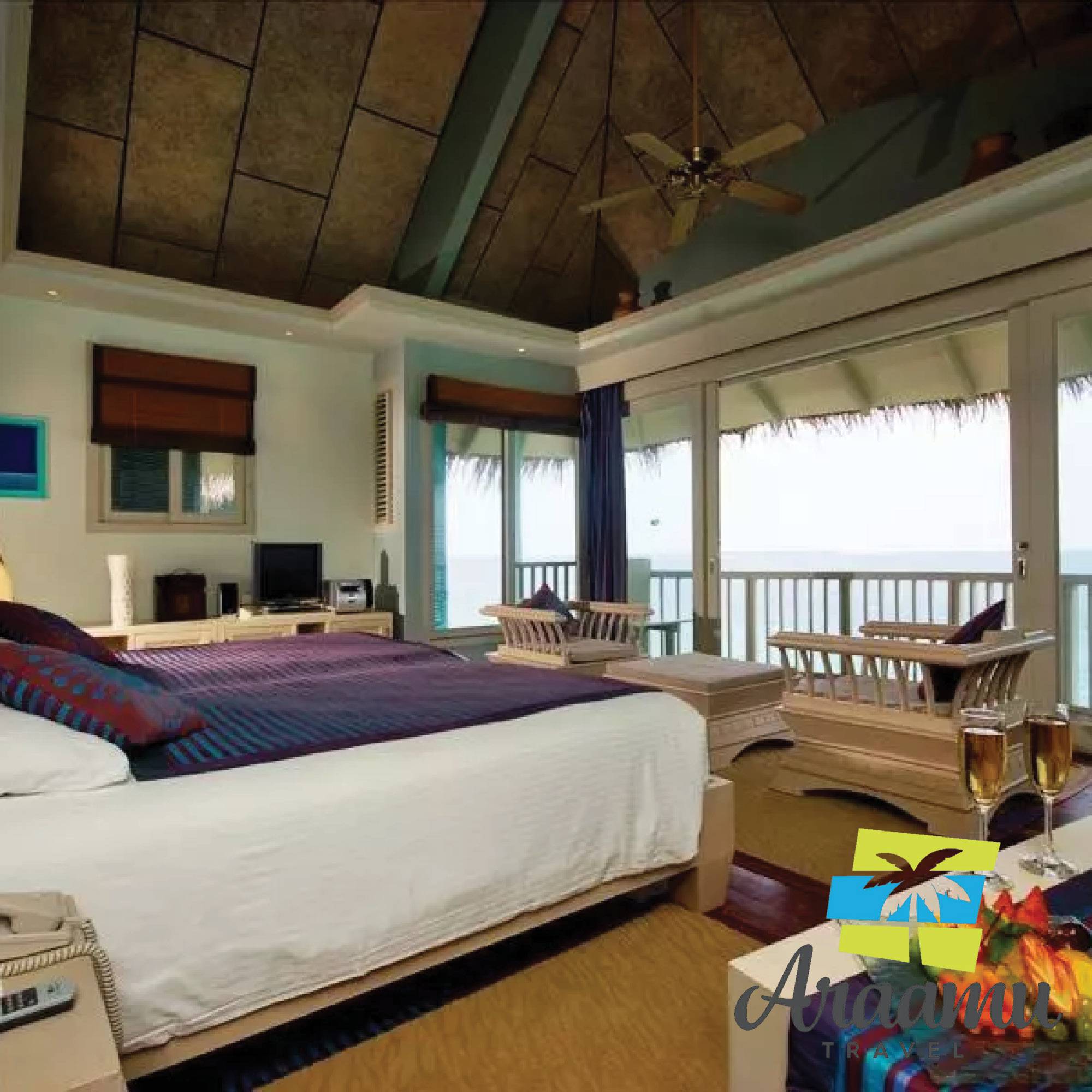 A 46 tágas luxus villa közvetlenül az óceán fölé épült. Az emeleten található a hálószoba. Nyitott fürdőszobával rendelkezik és a verandán találjuk jacuzzit is. Felszereltség: légkondícionáló, széf, nyitott fürdőszoba zuhanyzóval, hajszárító, fürdőköppeny, papucs, jacuzzi a verandán, tágas szekrények, minibár, kávé- és teafőző, palackozott ivóvíz, IDD telefon, műholdas síkképernyős TV, mérleg, vasaló, vasalódeszka, digitális ébresztőóra, napernyők, esőkabátok, cipőtisztító készlet, íróasztal, WiFi, veranda, könnyű székek, napozók, kávéasztal, térítésmentesen helyi újságok kérésre.