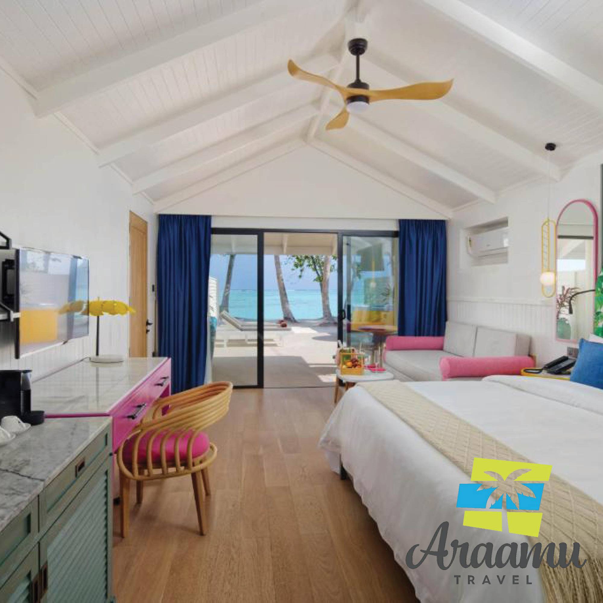 Sunset Water Villa: 73 nm, víz feletti villa, mely a sziget naplementés részén található, légkondícionáló, nyitott tusoló, hajszárító, minibár, tea- és kávéfőző, terasz, közvetlen bejárás a lagúnába, terasz, napozó terasz, TV, WiFi, telefon.