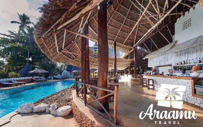 A hotel 87 szobás domboldalú komplexumában található TV-sarok, Wi-Fi a recepción (a szállás többi részében felár ellenében), fő étterem, Suli Suli a la carte seafood étterem (felár ellenében) , Nakupenda pizzéria (ingyenes), a tengerparton Ocean Reef Beach Grill (könnyű ebéd, ingyenes), bárok, butikok és medence, ahol a napágyak, napernyők és törölközők ingyenesek.